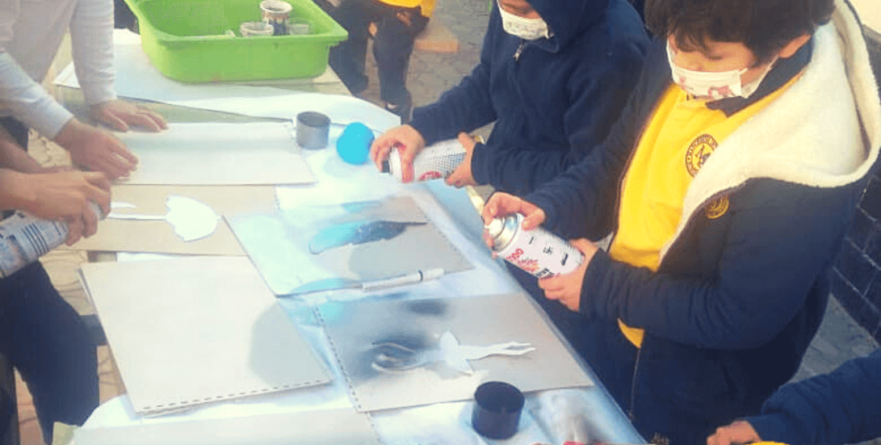 Year 3 have been practising for the first time with spray paints on stencils in their art lessons.