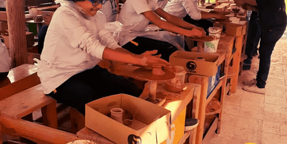 Students in Y4-5 took part in a creative experience at Noon by Fagnoon. They used pottery wheels to create clay