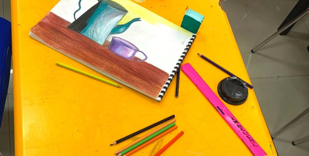 Y9A students have been drawing still life compositions in their art sessions and experimenting with shading technics whilst using coloured