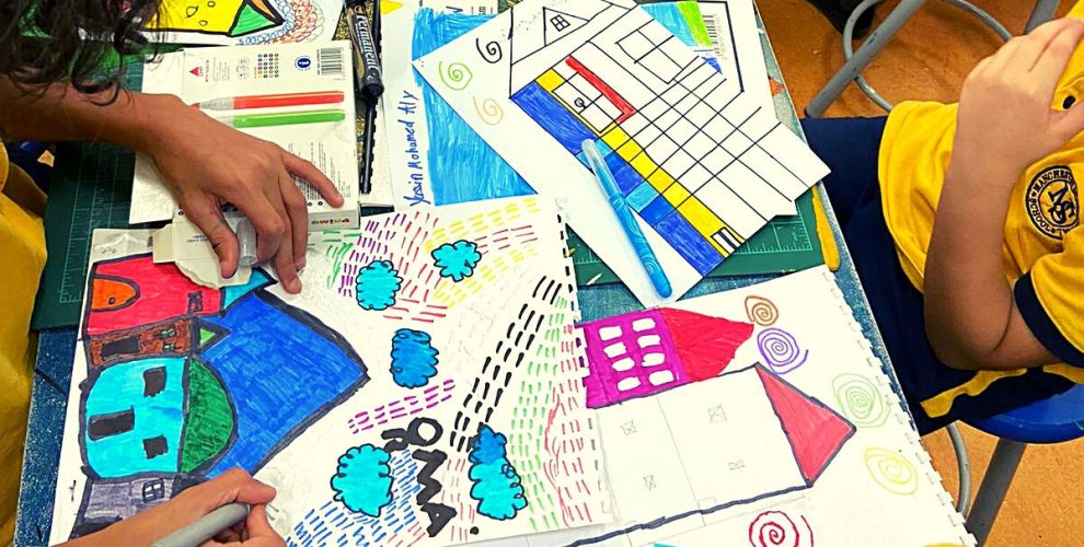 Y5 have been sketching houses to represent different textures whilst colouring.